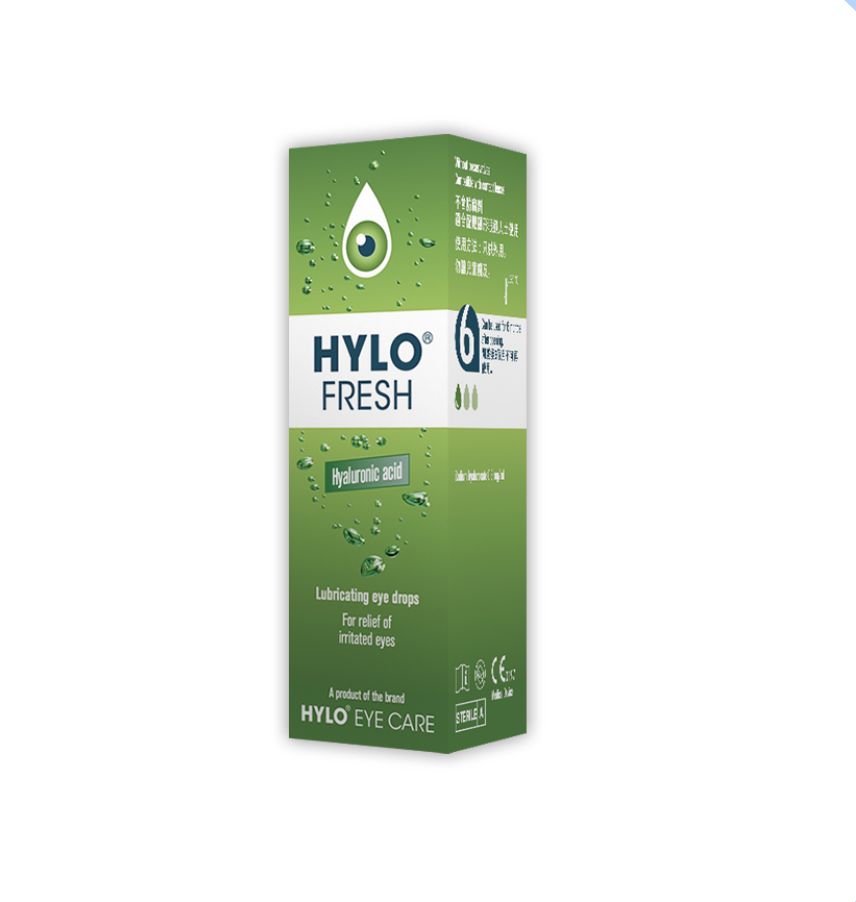 Hylo Fresh 新露潤眼液為疲憊的眼睛帶來新的清新感。主要針對空氣濕度低,長時間使用電子產品,雙眼變得疲勞及乾澀,眼睛發紅而刺痛等情況使用。新露潤眼液含有0.3%高濃度透明質酸sodium hyaluronate,能有效鎖住眼球表面水份,保持眼睛濕潤,有效舒緩因配戴隱形眼鏡和各種環境因素所引起的眼部刺激 ,如長時間凝望螢幕、乾燥、陽光中輻射和空氣中的灰塵或花粉。Hylo Fresh 含 小白菊 (Euphrasia officinalis),Euphrasia 用於舒緩結膜刺激、眼睛發紅和灼熱、過多淚水分泌 、眼瞼或眼瞼邊緣發紅腫脹。